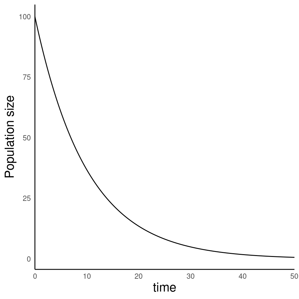 Change in population size (\(N\)) only driven by births and deaths