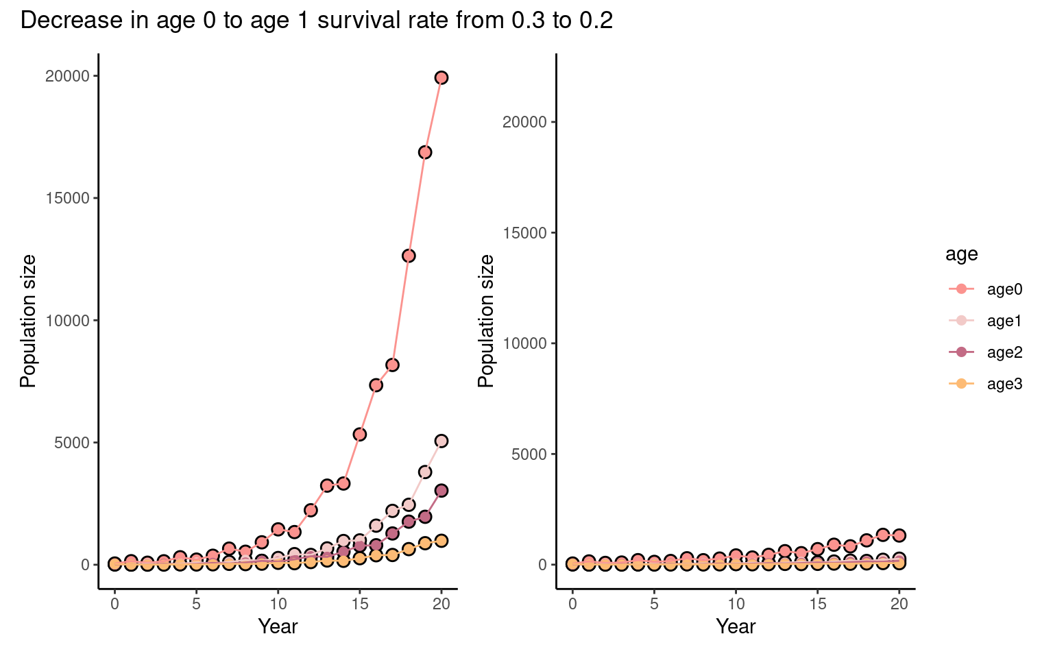 Or if newborn rates were unaffected, but survival from year 1 to 2 was reduced from \(80\%\) to \(70\%\)?