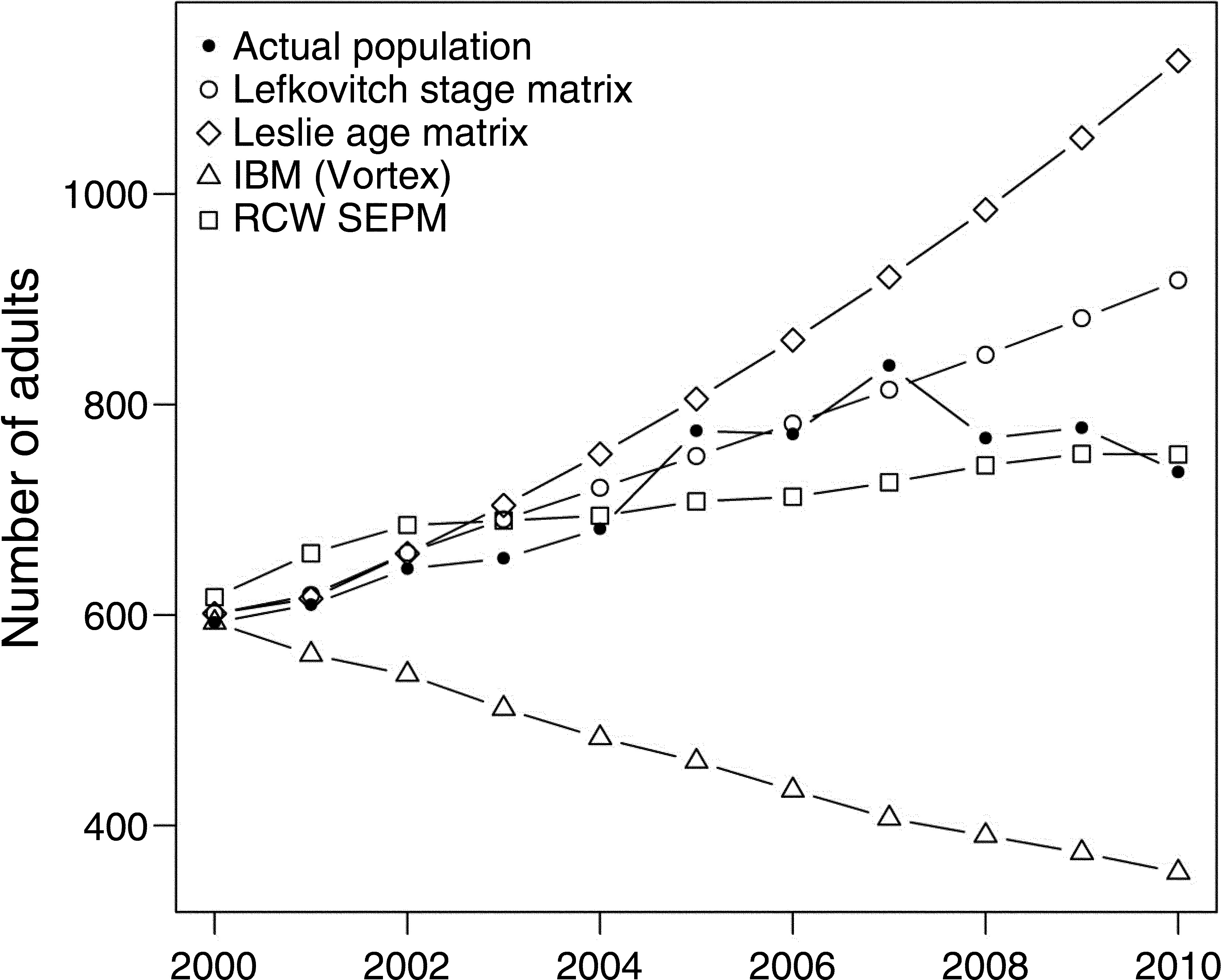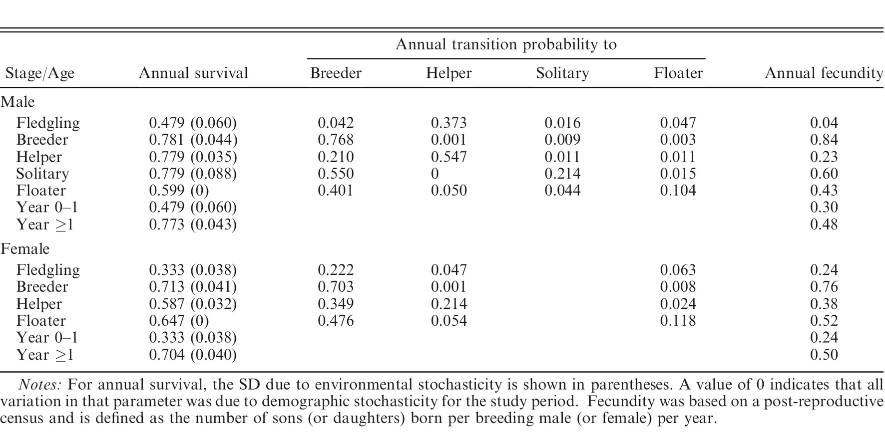 As in Heppell et al. (1994), matrices were constructed in this study as male-only models because, unlike females, males almost exclusively comprise the helper class and can hold territories despite being unpaired