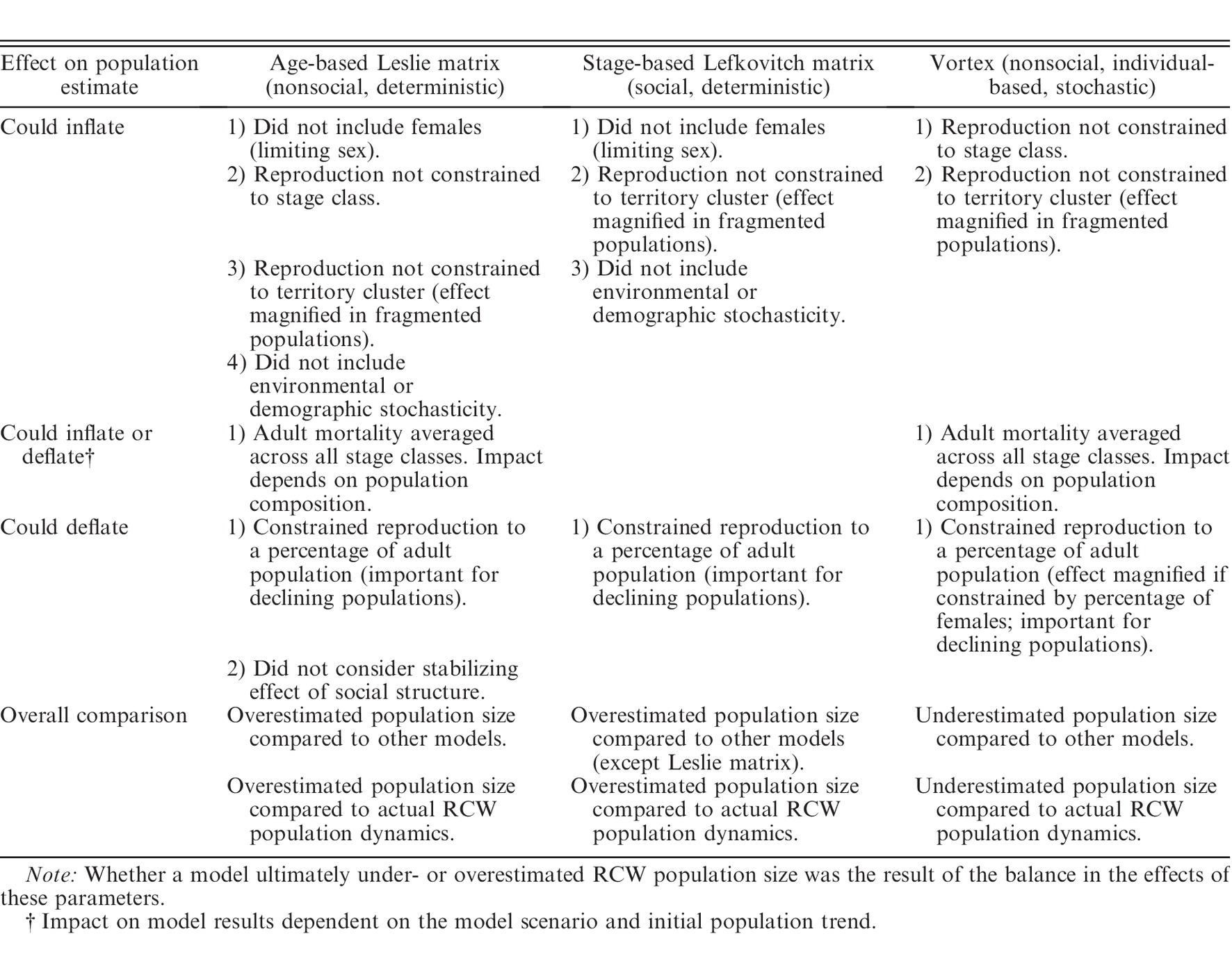 Importance of comparing models that incorporate different aspects of a species’ biology