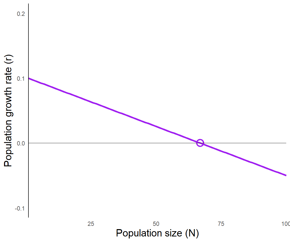 \[\frac{dN}{dT} = rN\bigg(1-\frac{N}{K}\bigg)\]