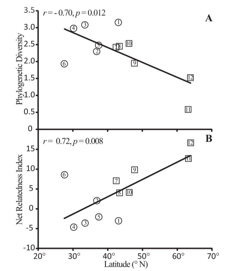 Plotting the relationship between diversity and latitude