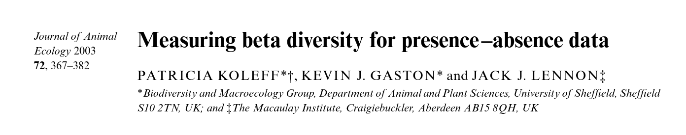 \(\beta\) is the number of species unique to one community