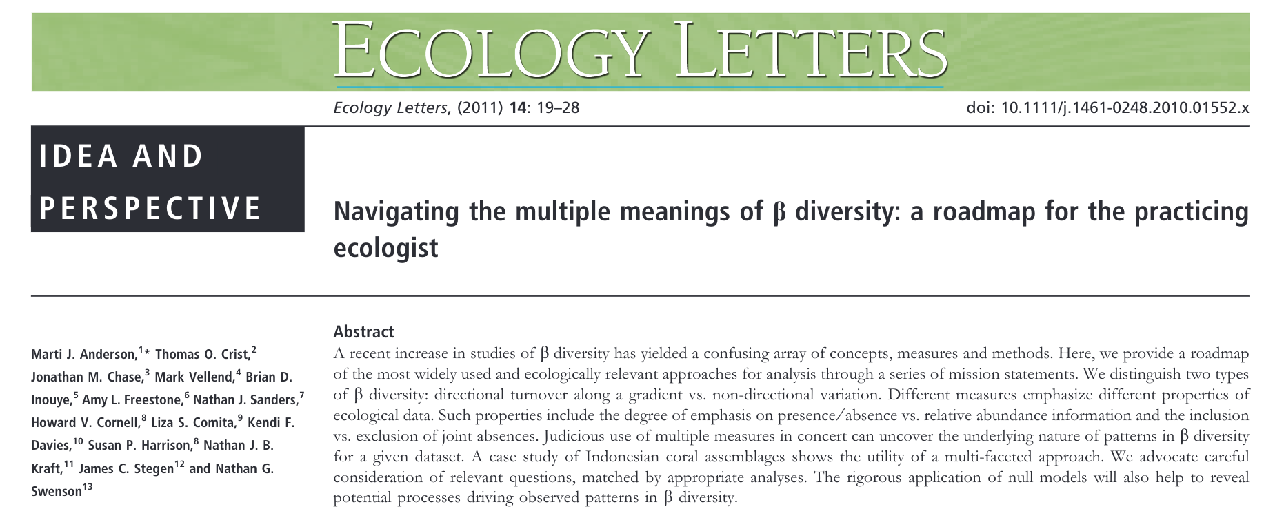 Consider two locations where the same set of twelves species can be found.