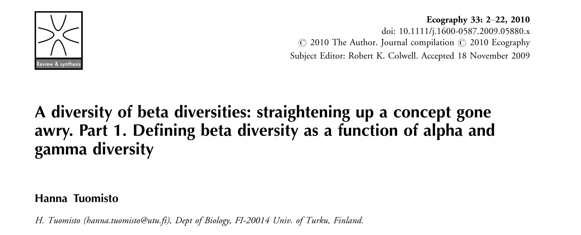To accurately define patterns of diversity, we need accurate measures of diversity.
