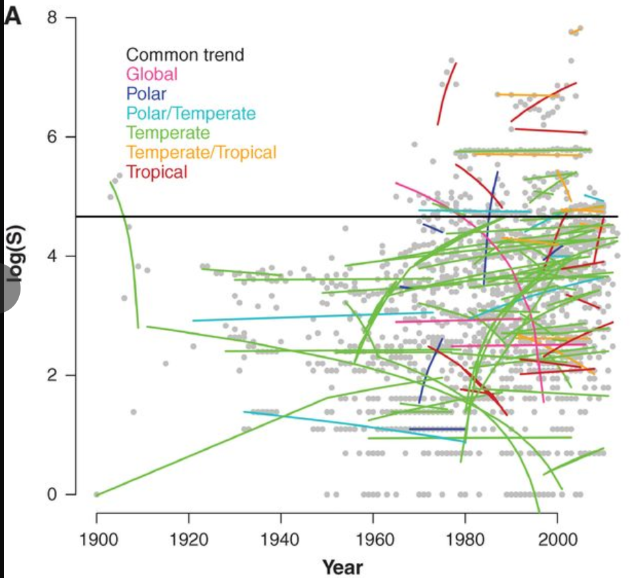 But, if we look at the same place over and over again through time, we are not seeing consistent declines in diversity