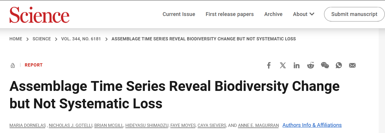 “Even faced with dramatic environmental change, species richness (\(\alpha\)) can remain, on average, constant. However, this apparent constancy hides enormous turnover in the identities of the species present”